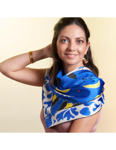 Le mot de l'équipe : Ourse Blanche est une artisane créatrice de carrés de soie imprimés à partir de dessins entièrement peints à la main dans son atelier angevin. Les foulards, de qualité twill de soie, sont imprimés en édition très limitée dans des ateliers en France et en Italie; les bords sont roulottés à la main. De belles pièces de soie aux couleurs vives pour des femmes pétillantes et élégantes, parfaites pour offrir ou pour se faire plaisir !