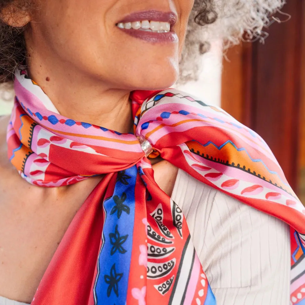 Ce grand carré de soie est un cadeau d’exception à offrir ou s’offrir. Original, coloré, artistique et écoresponsable, il fera pour sûr une grande surprise ! Chaque pièce est ainsi emballée avec soin, accompagnée de la carte racontant l’histoire du tableau et les conseils d’entretien de la soie.