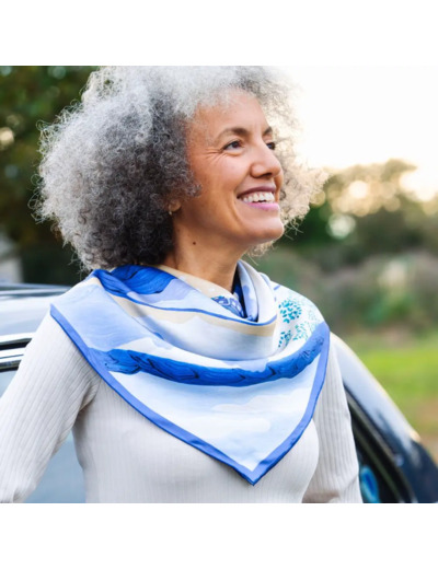 Ce grand carré de soie est un cadeau d'exception à offrir ou s’offrir. Original, coloré, artistique et écoresponsable, il fera pour sûr une grande surprise ! Chaque pièce est ainsi emballée avec soin, accompagnée de la carte racontant l’histoire du tableau et les conseils d’entretien de la soie.