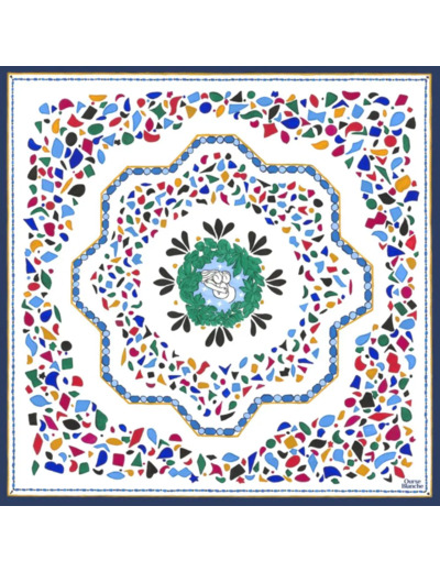 Le petit foulard en soie les Amoureux des Etoiles est un ciel de fragments de mosaïques aux émaux colorés.