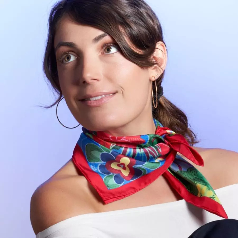 Le mot de l'équipe : Ourse Blanche est une artisane créatrice de carrés de soie imprimés à partir de dessins entièrement peints à la main dans son atelier angevin. Les foulards, de qualité twill de soie, sont imprimés en édition très limitée dans des ateliers en France et en Italie; les bords sont roulottés à la main. De belles pièces de soie aux couleurs vives pour des femmes pétillantes et élégantes, parfaites pour offrir ou pour se faire plaisir !