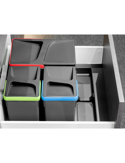 Produits indispensables avec la base 3 cavités, 3 poubelles tri sélectif avec conteneurs aux choix: