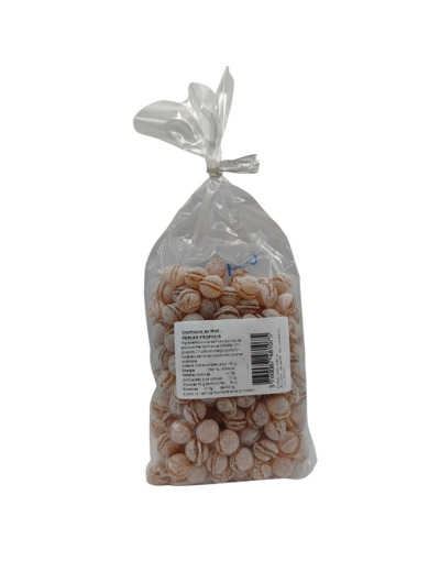 Sucre de France, sirop de glucose, Miel de France 10%, propolis 2% (alcool, miel, propolis 32%, huile essentielle de romarin), colorant caramel ordinaire.