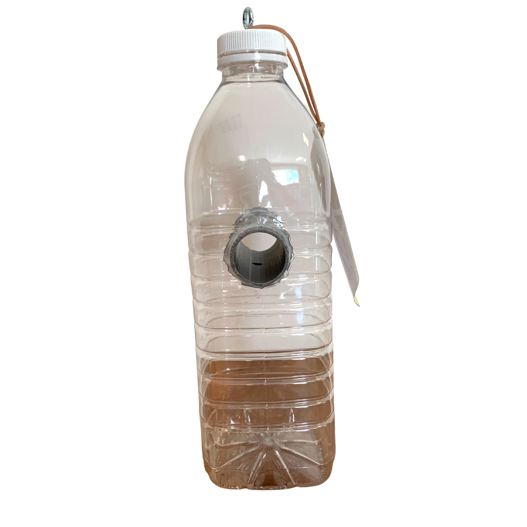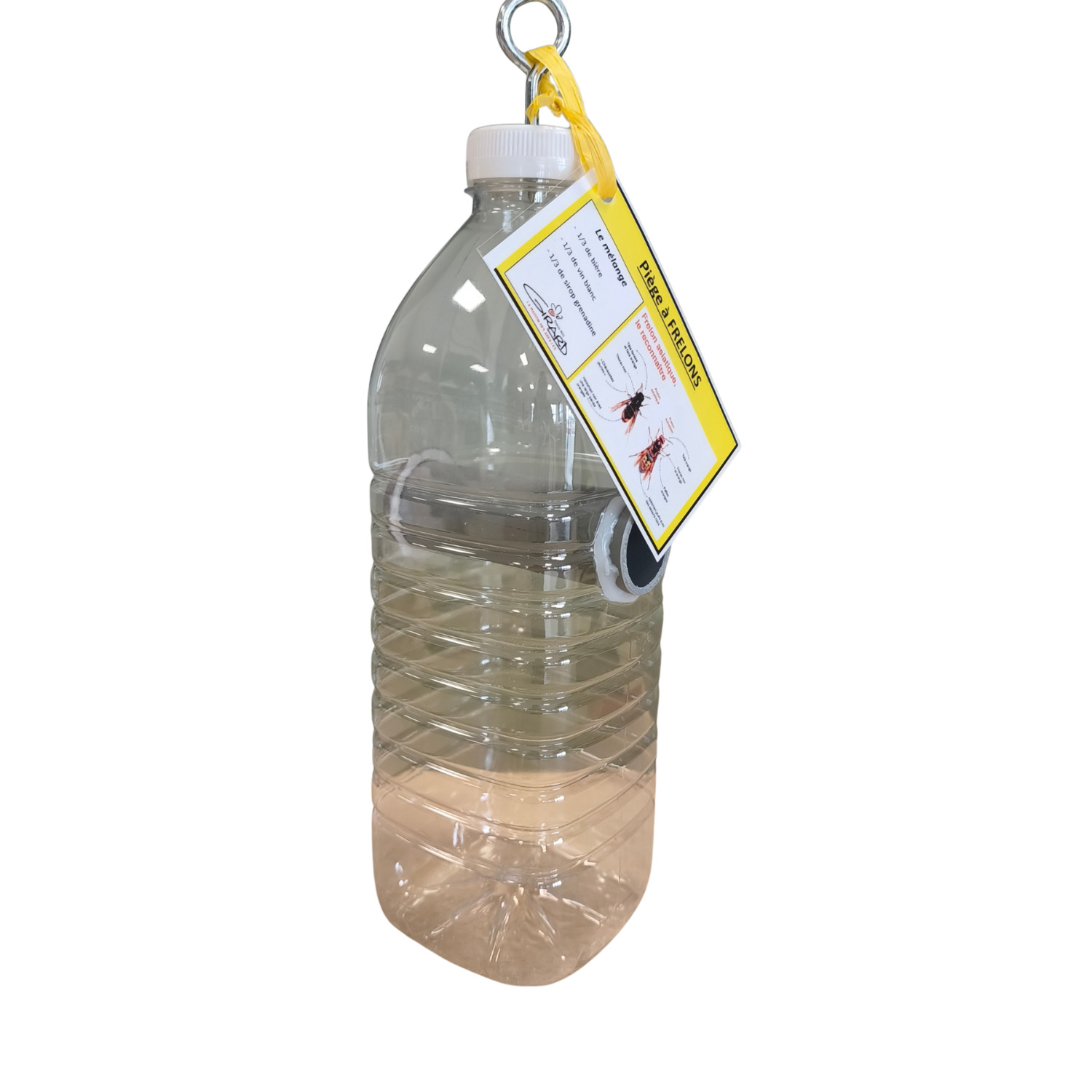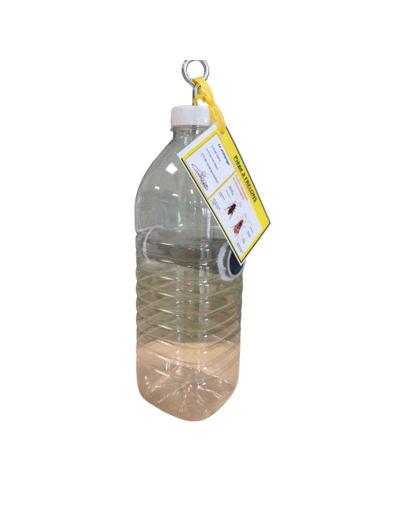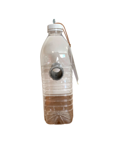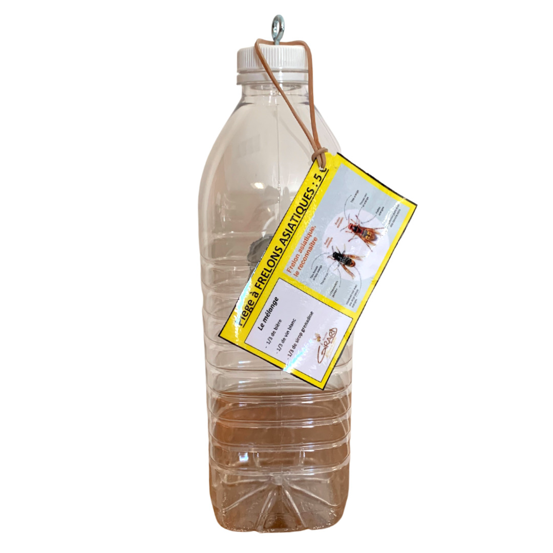 Les frelons asiatiques sont attirés par l'odeur alcoolisée et sucrée qui se dégage de la bouteille et grâce au petit trou présent dans le tuyau, le frelon sera piégé, tombera au fond de la bouteille et ne pourra pas ressortir.