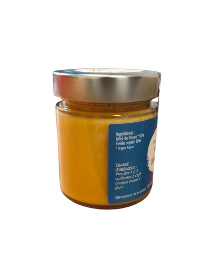 Délicieuse préparation, ce mélange contient 225g de miel et 25g de gelée royale. Grâce à sa contenance en gelée royale, réputée pour être riche en vitamines et en oligo-éléments (zinc, fer, magnésium, cuivre, ...), cette préparation sera votre allié pour vous aider à rester en forme tout au long de l'année.