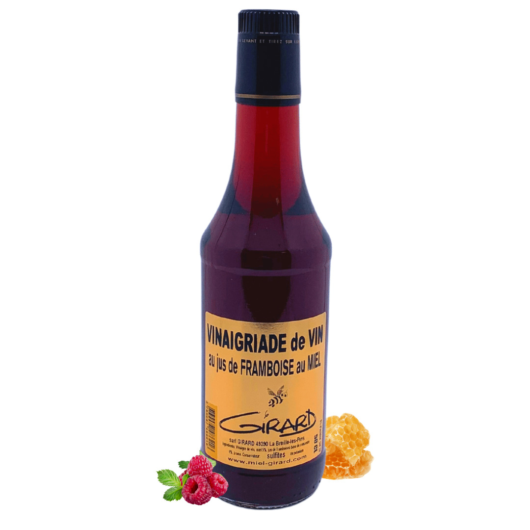 Ingrédients : vinaigre de vin, miel 5%, jus de framboise à base de concentré
