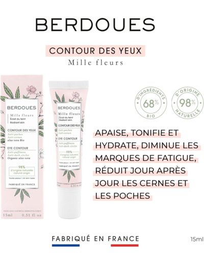 Le Contour des yeux apaise, tonifie, hydrate et apporte douceur et éclat à cette zone.