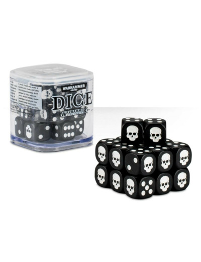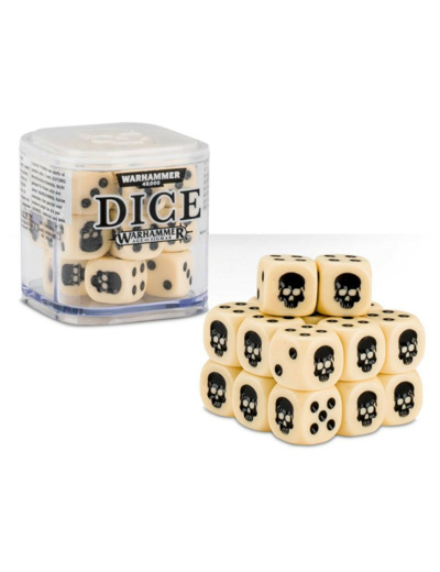 Un cube en plastique solide et endurant, contenant 20 dés de 12mm avec une icône de crâne à la place du ‘1’. Ce cube de dés est orné d'un crâne en relief sur son couvercle (il n'y aura jamais trop de crânes dans Warhammer) et il est empilable, pour obtenir toute une tour de dés de plusieurs couleurs!