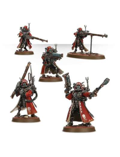 L'unité peut inclure un Alpha, muni d'un pistolet à radium ou d'un électropistolet et d'une arme de corps à corps (épée énergétique, matraque taser ou électromasse) et trois figurines peuvent avoir des armes spéciales. Vous avez accès à une arquebuse transuranique, à un électrofusil et à un tromblon à plasma, ce dernier étant fourni avec une tête et un paquetage spécifique. Une des figurines peut devenir l'Alpha, doté d'un datacâble amélioré ou d'un omnispex; la boîte dépeint véritablement l'obsession de l'Adeptus Mechanicus pour la collecte de données.