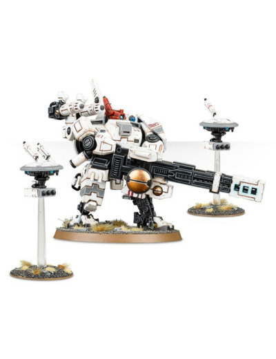 Ce kit plastique contient 91 éléments et une planche de décalcos t’au, ce qui vous permet d’assembler une Exo-armure Broadside et deux Drones.
