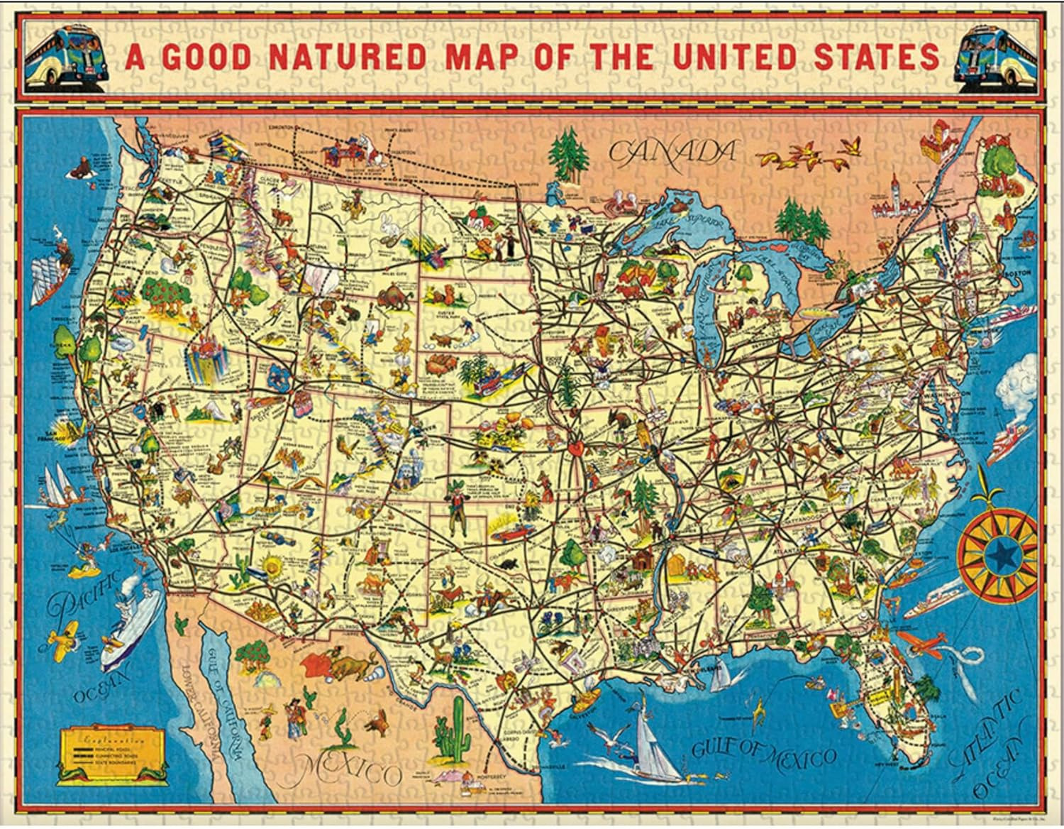 Cavallini Puzzle de 1000 pièces, carte des États-Unis (PZL/USMAP)