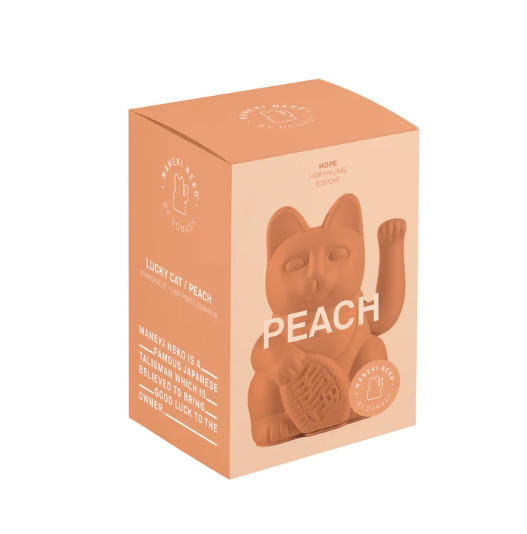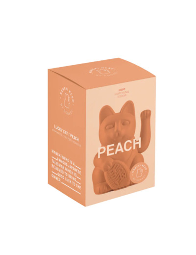 La pêche de chat chanceux est un Maneki Neko traditionnel, qui est connu au Japon comme un porte-bonheur. Avec sa patte ondulante, il attire les bonnes choses et est censé apporter une énergie positive à ses propriétaires.. La couleur pêche de ce chat ondulant représente l’espoir. Il symbolise la confiance en un avenir meilleur et nous rappelle le pouvoir des attentes positives. Ce Lucky Cat Peach est un symbole magnifique pour tous ceux qui croient aux nouveaux départs et à la possibilité de changement. Un orange doux et pastel - comme la peau veloutée d’une pêche mûre. Jamais voyant, mais toujours présent, il s’adapte à la lumière : Parfois subtil et retenu, parfois avec une touche plus d’intensité. Une couleur subtile mais jamais ennuyeuse. Taille : 15cm.