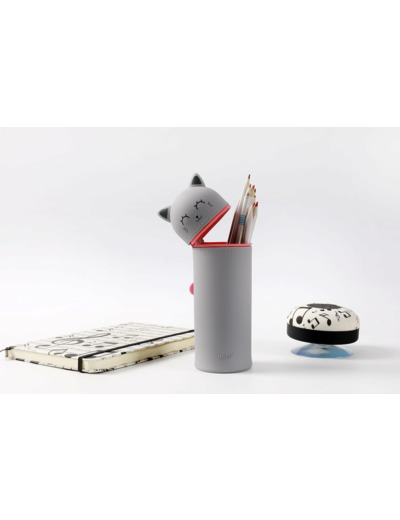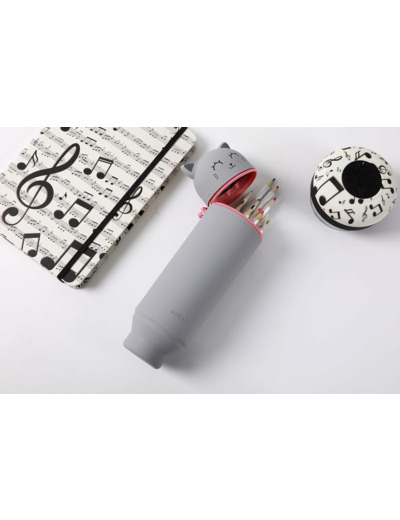 I-Total® - Trousse En Silicone Souple Pour L'école, Extensible Avec Forme Profilée Grey Cat
