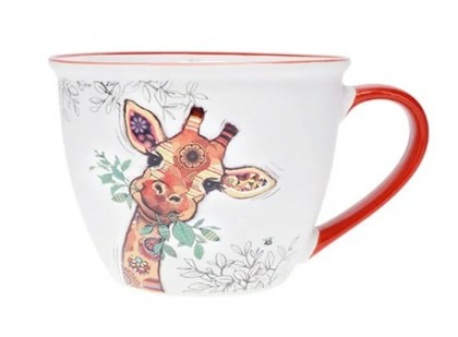 KIUB Bol timbale avec une anse - Motif girafe qui mange tranquillement - matière porcelaine - contenance 550ML