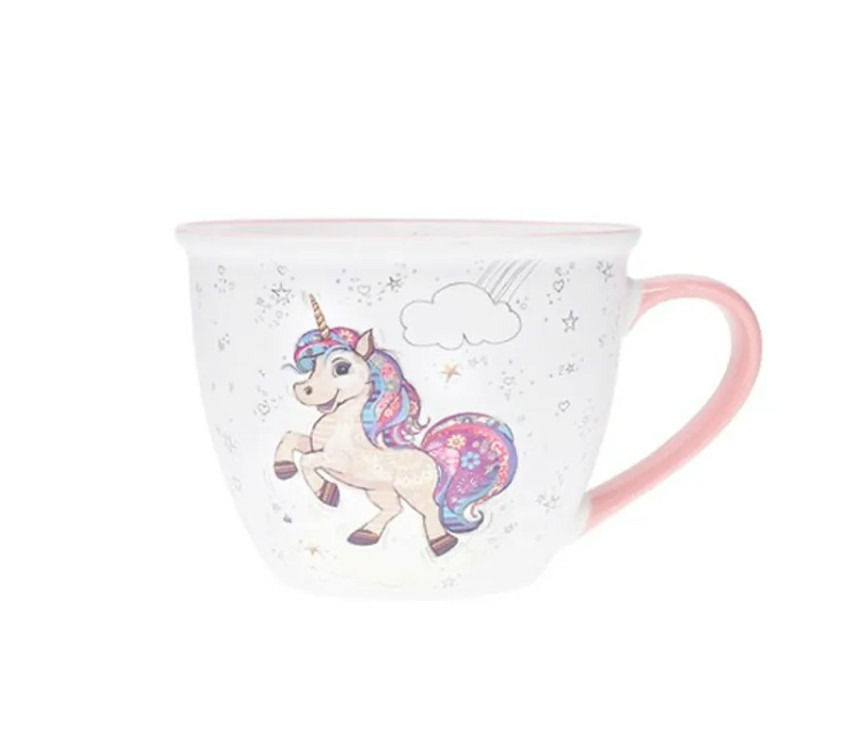 KIUB Bol timbale avec une anse - Motif licorne qui danse - matière porcelaine - contenance 550ML