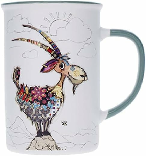 Kiub Grand mug avec des animaux - motif bouquetin au sommet de sa montagne - matière porcelaine fine - contenance 360ML