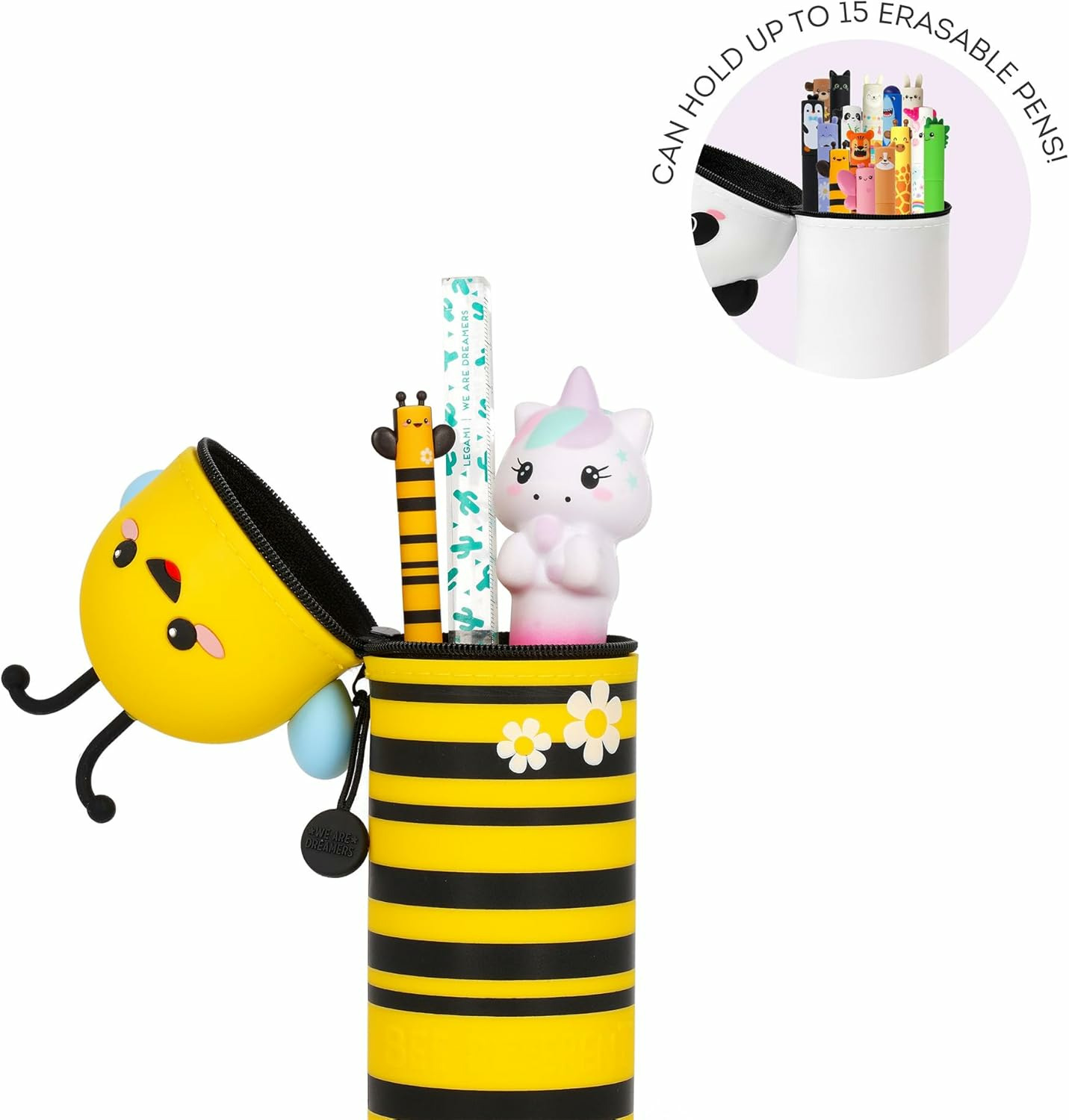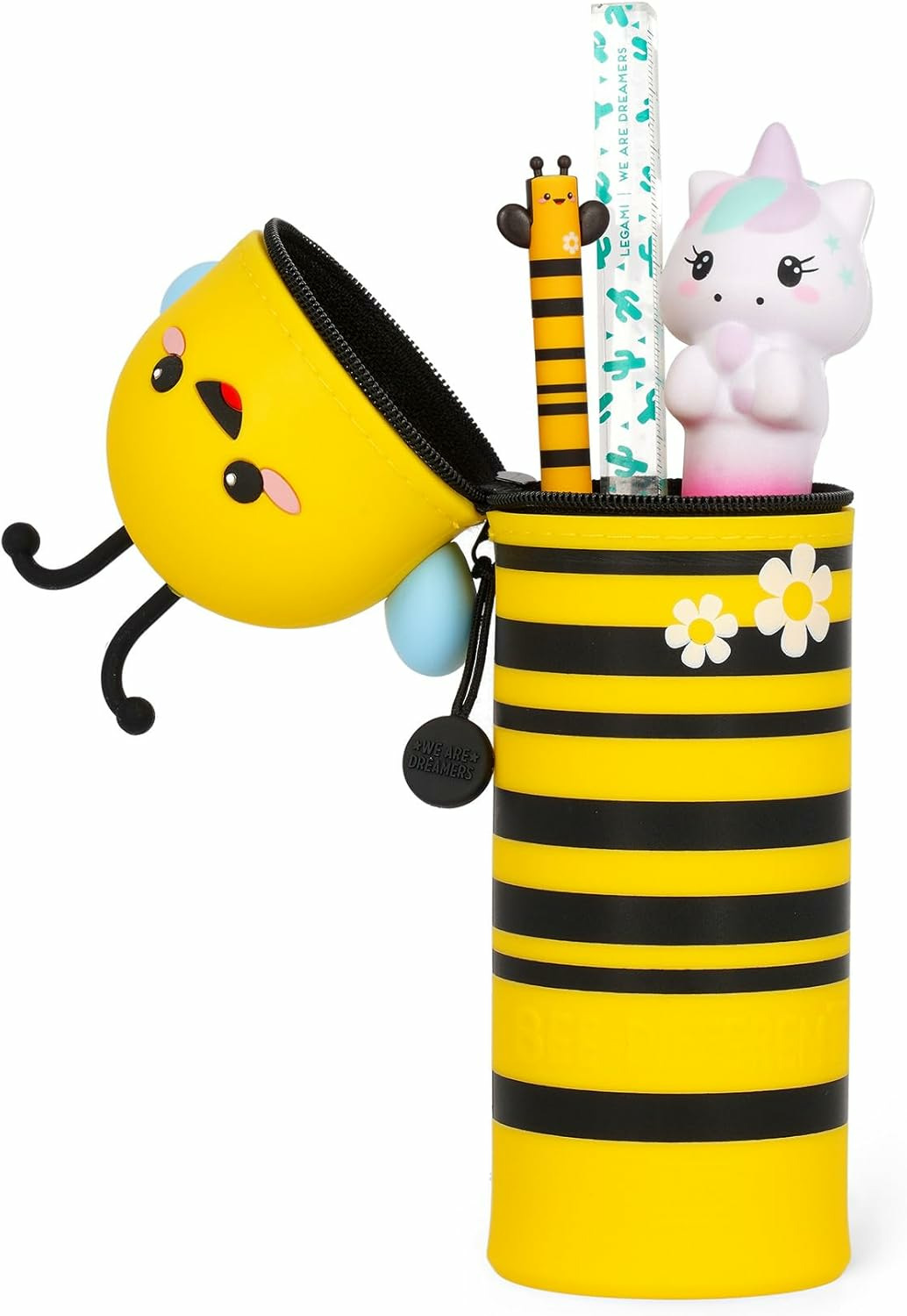 Legami - Kawaii Étui École 2 En 1 En Silicone Souple, Porte-Stylos De Table, Fermeture À Glissière, Stylos Crayons Feutres Bee