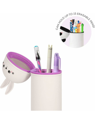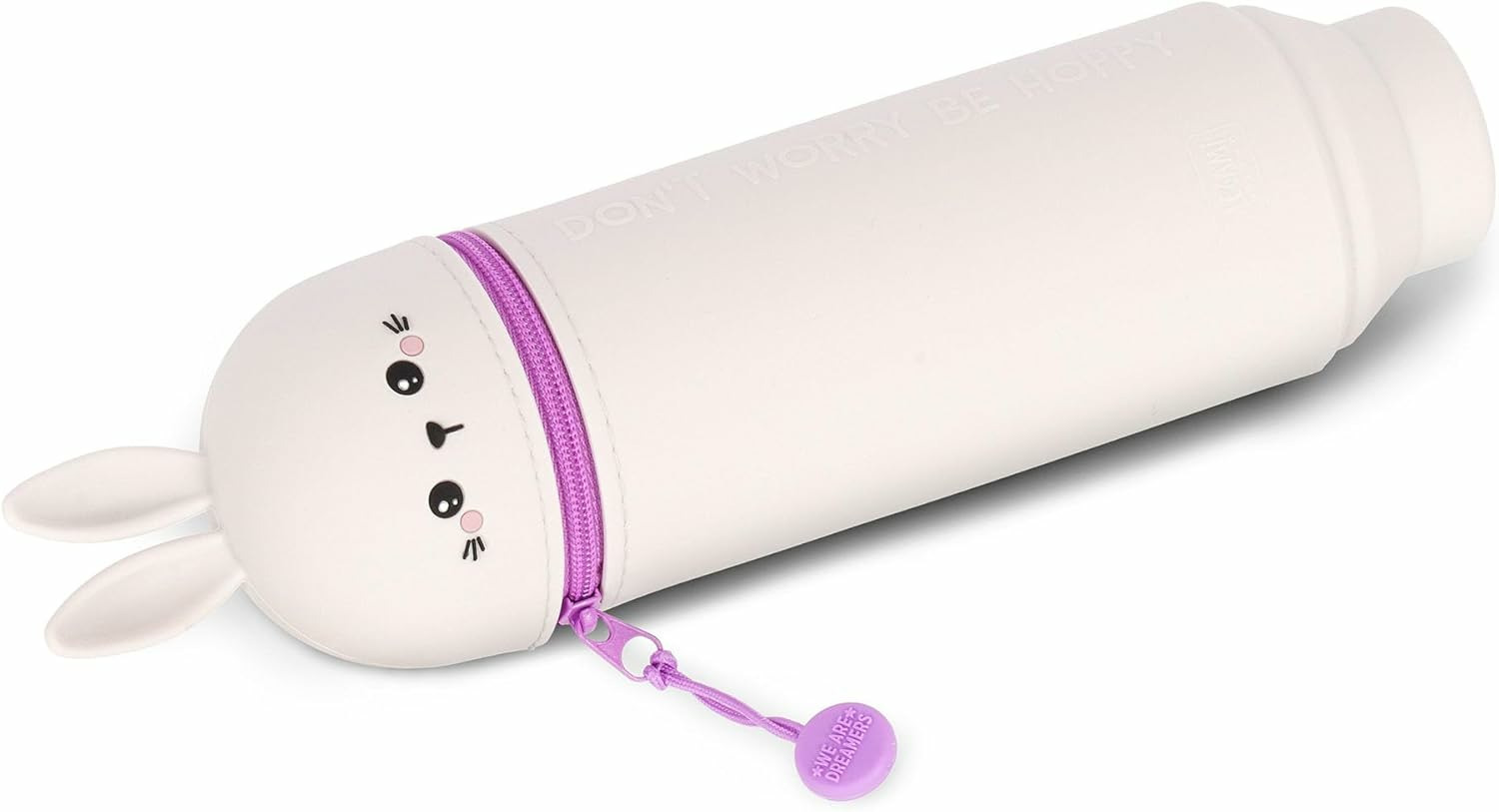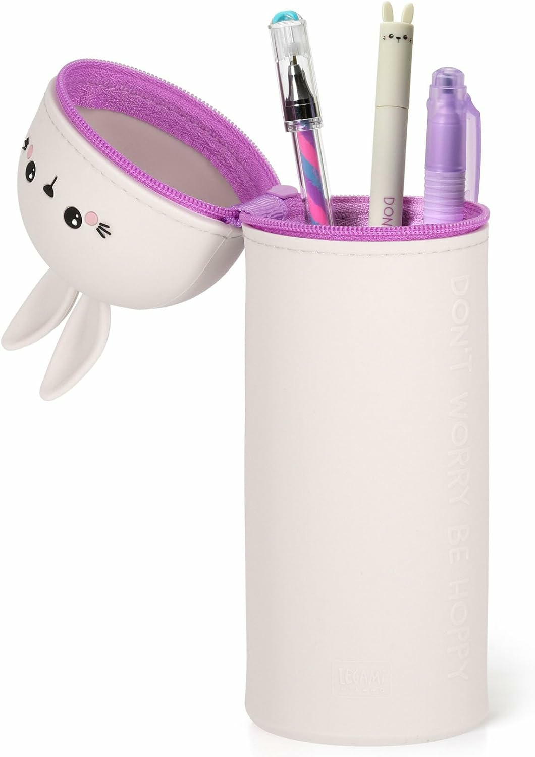 Legami - Kawaii Étui École 2 En 1 En Silicone Souple, Porte-Stylos De Table, Fermeture À Glissière, Stylos Crayons Feutres Bunny