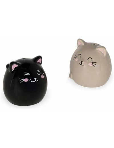 Set sel et poivre en céramique - Salt & Pepper - Kitty de Legami : une salière et une poivrière faites l’une pour l’autre, prêtes à apporter du goût à ta table et à toutes tes recettes.