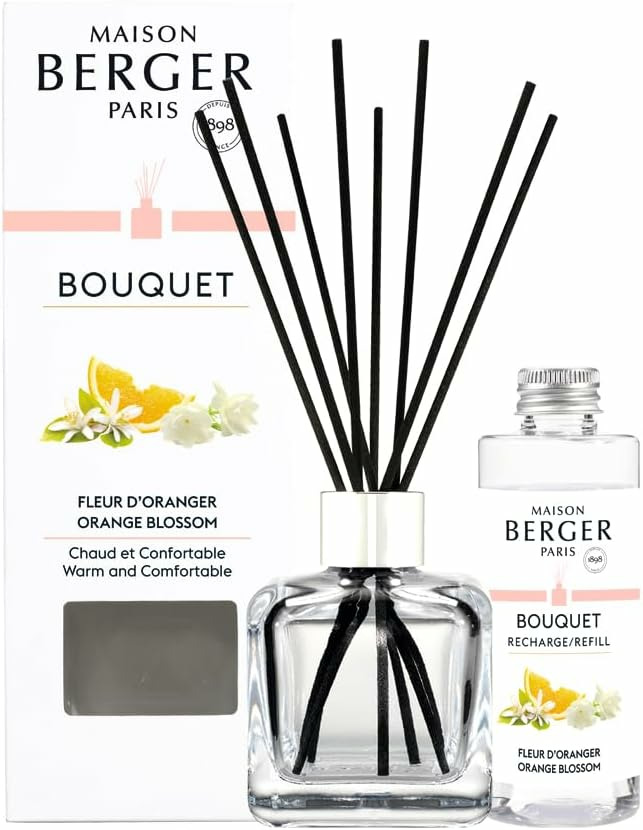 Maison Berger - Bouquet Parfumé - Modele Glaçon Transparent - 6 Brins Noirs - 21 Cm - Recharge De 100 Millilitres Incluse - Durée De Diffusion 4 À 6 Semaines (Fleur D'oranger)