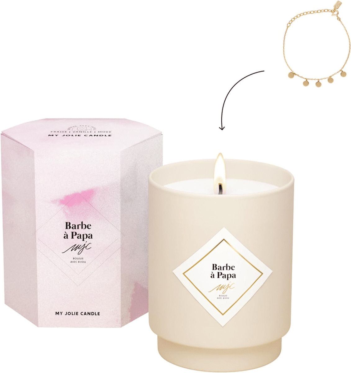 Offrez-vous ou offrez à un être cher cette bougie bracelet en or parfum barbe à papa pour ajouter une touche de luxe et de gourmandise à votre vie quotidienne. Découvrez le mystère de la bougie et laissez-vous séduire par son parfum sucré et son bracelet en or élégant. Une expérience sensorielle et visuelle à savourer.