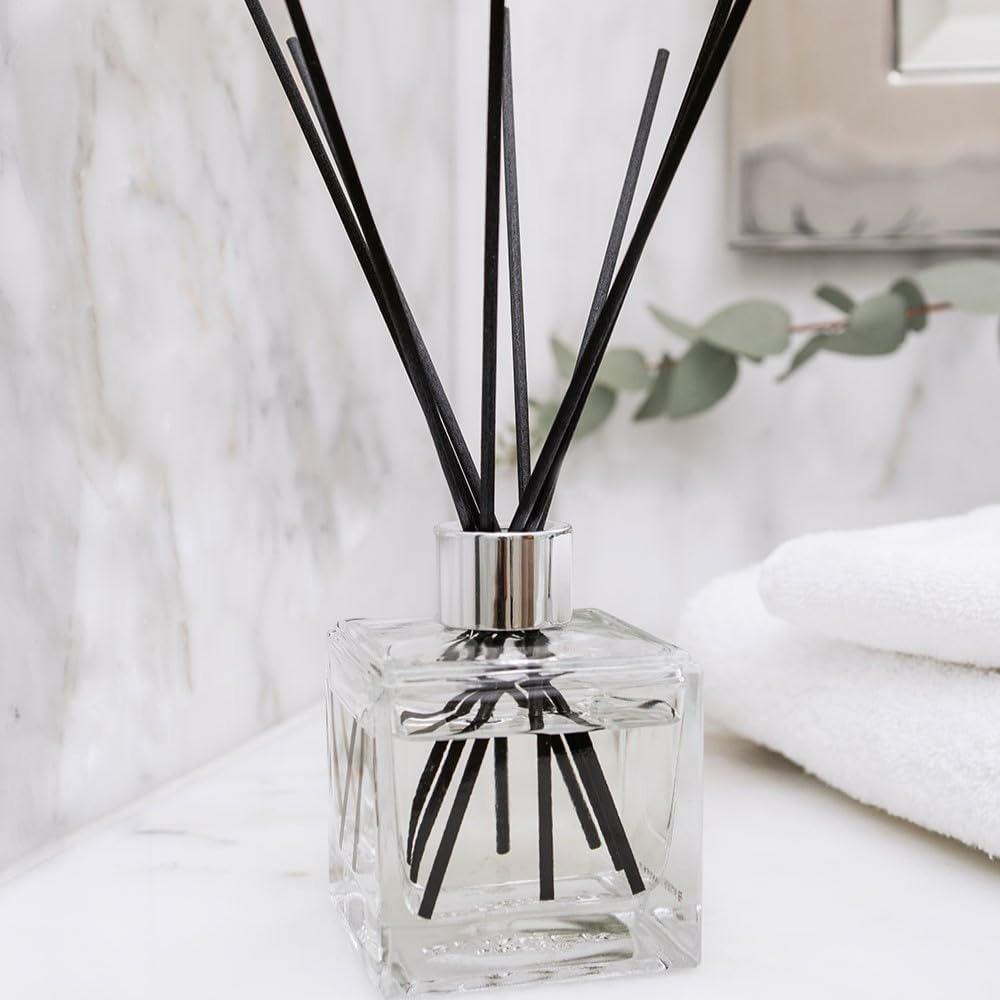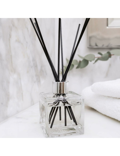 Un élégant cube en verre transparent orné d’une bague argentée et rehaussé par son bouquet de brins noirs pour un design contemporain. Les brins : élaborés dans un polymère technique, les 8 brins garantissent une diffusion optimisée du parfum sans décoloration dans la solution. Hauteur des brins : 21cm. Le parfum : Jasmin Précieux : le mariage subtil de la douceur envoûtante du jasmin et des notes florales douces et épicées. Cube vendu rempli avec 125ml de parfum. Rechargeable avec la recharge pour bouquet parfumé 200ml. Parfum garanti sans colorants, développé en France par des maîtres parfumeurs. Temps de diffusion : +/- 6 semaines