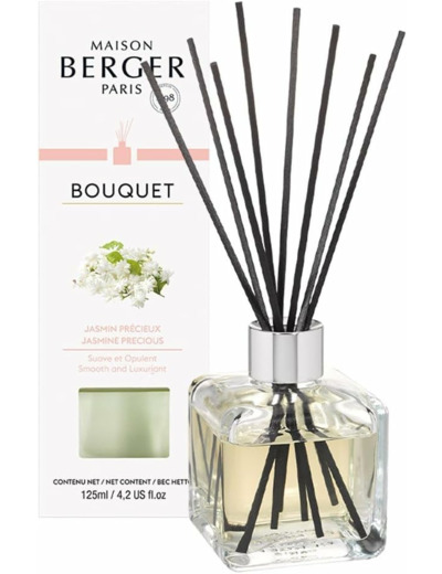 Maison Berger - Bouquet Parfumé Jasmin Précieux - Diffuseur Parfum Maison + 8 Bâtonnets - Diffusion Longue Durée, Douce Et Continue - 125Ml