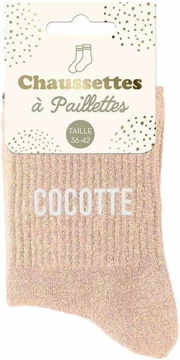 Découvrez les chaussettes à paillettes 'Cocotte'. Si vous cherchez une paire de chaussettes stylées et confortables pour l'hiver, ne cherchez pas plus loin ! Avec ces chaussettes, les cocottes pourront afficher leur style tout en gardant les pieds bien au chaud. C'est le cadeau parfait pour toutes les cocottes, peu importe leur âge. rose paillettes dorées taille unique 36-42 55% coton, 32% polyester, 11% fil métallique et 2% élasthanne chaud et stylé cocotte uniquement