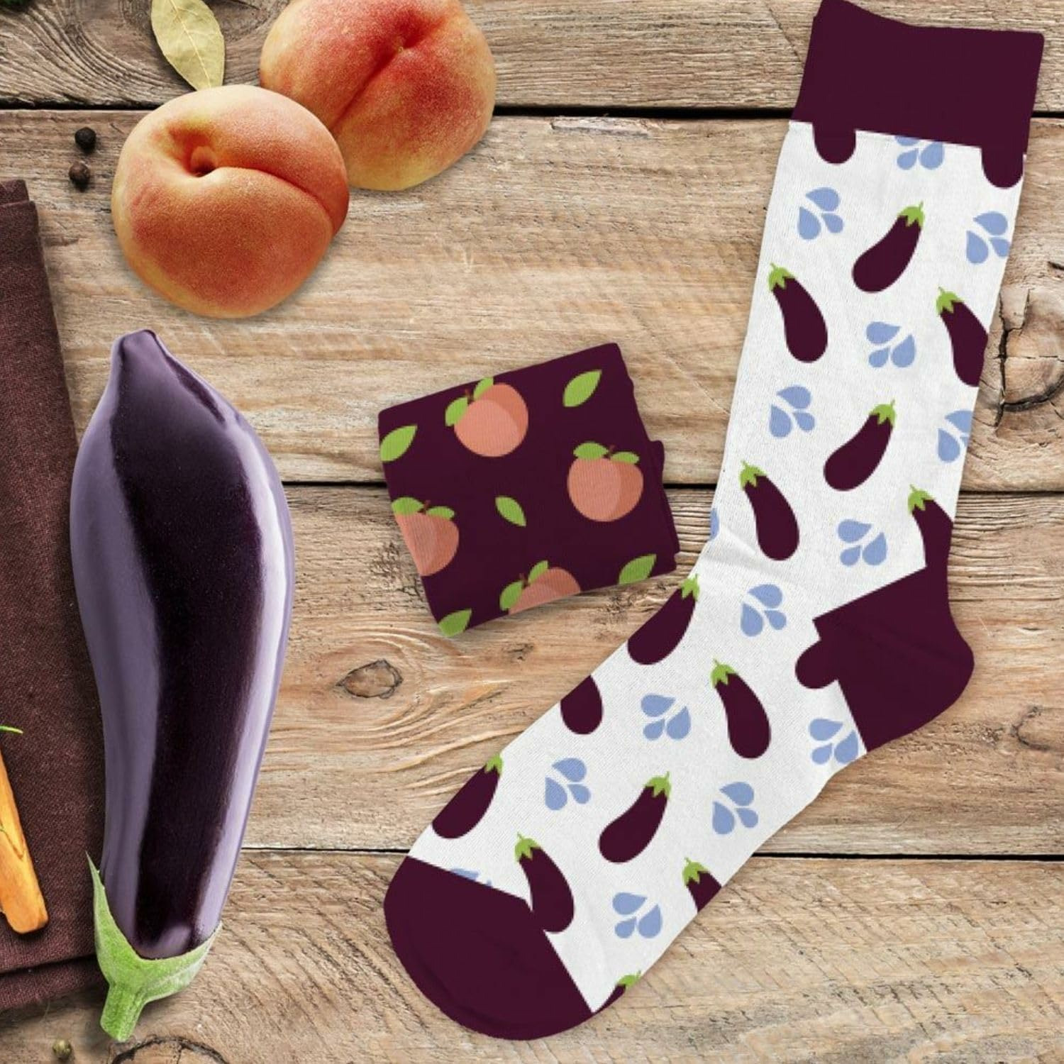 À la recherche d'une paire de chaussettes originale et humoristique qui tient au chaud ? Notre paire de chaussettes "pêche aubergine" est la paire idéale ! Taille : unique