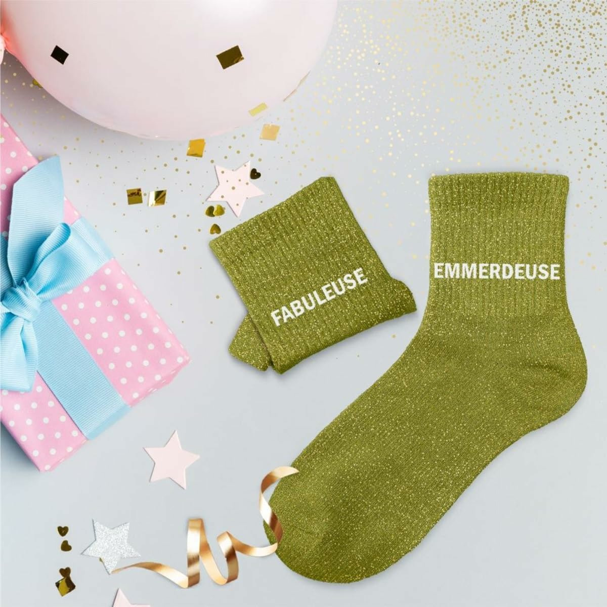 À la recherche d'une paire de chaussettes originale qui tient au chaud ? Notre paire de chaussettes dépareillées à paillettes "fabuleuse" et "emmerdeuse" est l'accessoire Mode idéal !