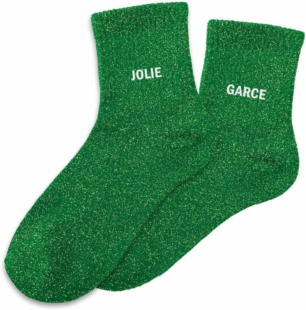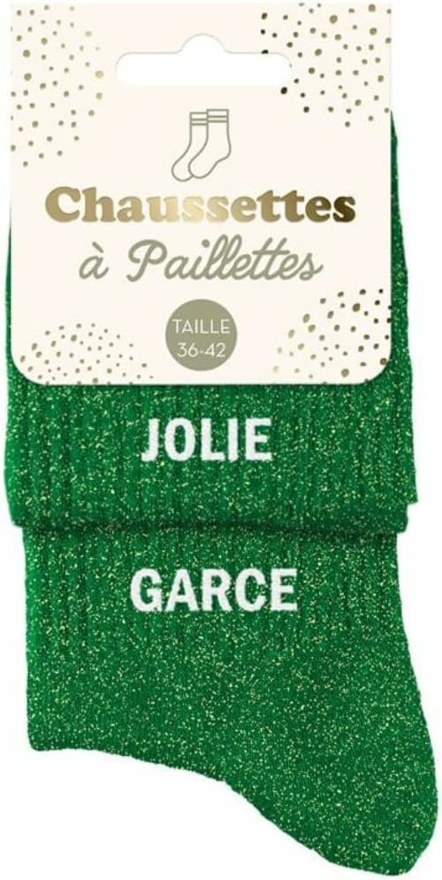 À la recherche d'une paire de chaussettes originale qui tient au chaud ? Notre paire de chaussettes dépareillées à paillettes "JOLIE" et "GARCE" est l'accessoire Mode idéal !