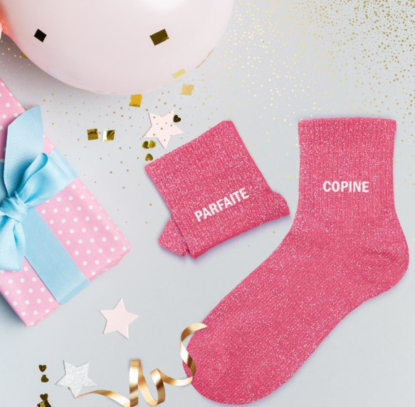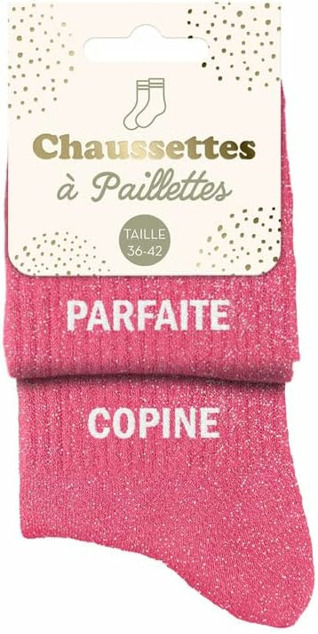 À la recherche d'une paire de chaussettes originale qui tient au chaud ? Notre paire de chaussettes dépareillées à paillettes "parfaite" et "copine" est l'accessoire Mode idéal !