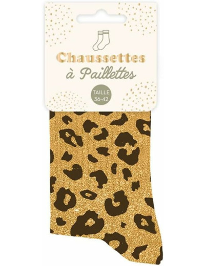 Chaussettes courtes à paillettes jaunes léopard. (Taille 36-42).