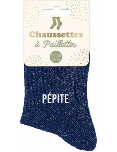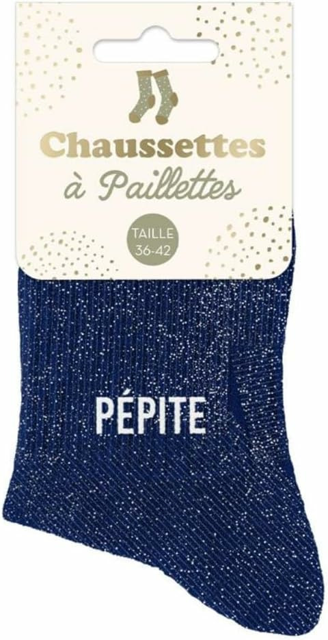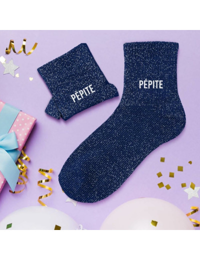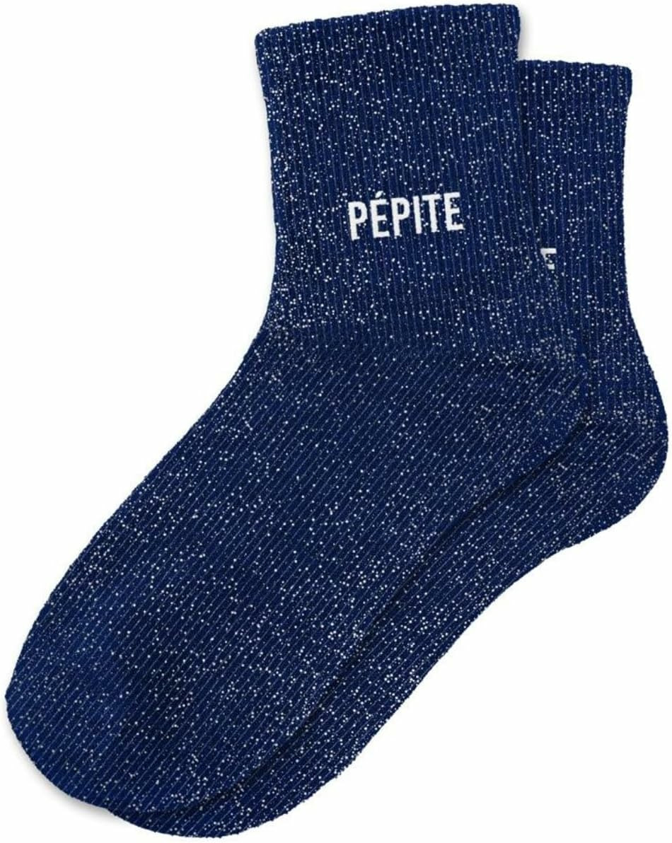 Chaussettes à paillettes bleu foncé avec message "pépite" (Taille 36-42)