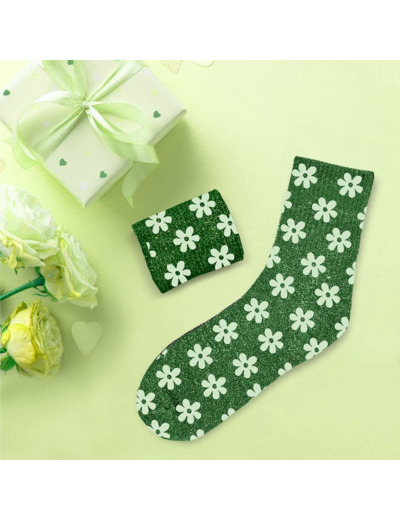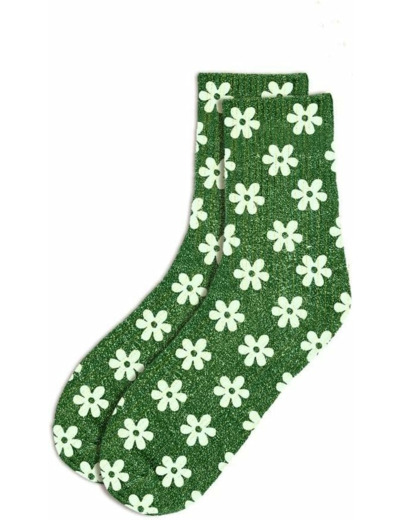 STC, Chaussettes paillettes courtes - Vert Fleur (taille unique 36-42)