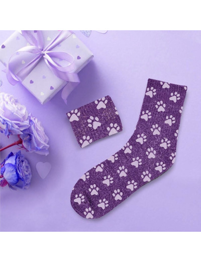 STC, Chaussettes paillettes courtes - Violet Chat (taille unique 36-42)