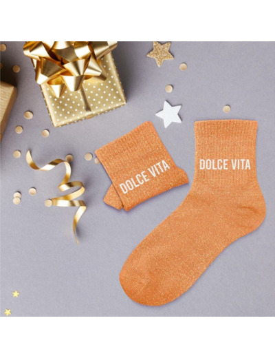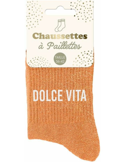 Ces chaussettes paillettes scintillantes, arborent fièrement la mention "DOLCE VITA". (Taille 36-42)