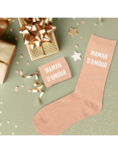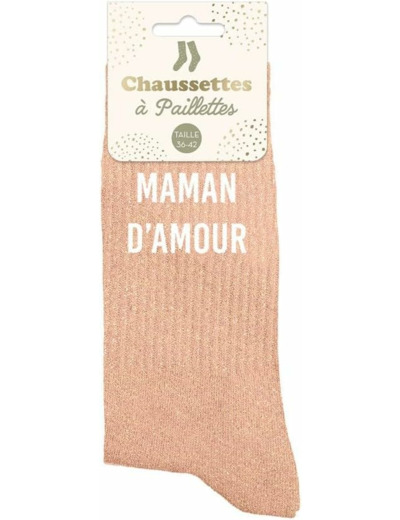 T Paire de chaussettes en coton et polyester, coloris rose avec des paillettes scintillantes et le message maman d'amour en blanc, à offrir pour un look audacieux et tendance. Taille unique : 36 - 42. Parfait pour rester au chaud lors des longues soirées hivernales, ce sous-vêtement est idéal en cadeau pour montrer votre attachement à son bien-être....