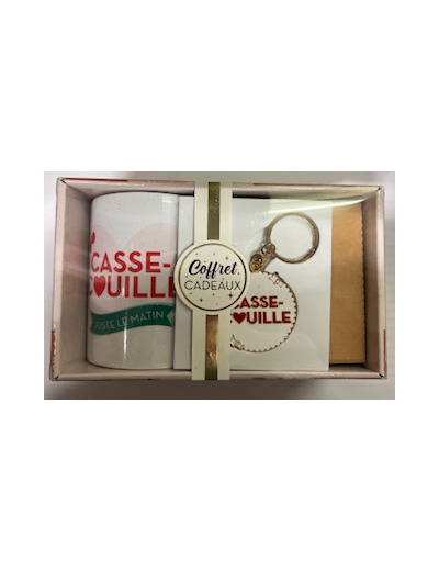 Offrez un cadeau mémorable avec ce coffret cadeau qui combine un mug élégant et un porte-clés assorti.Ce coffret comprend un mug et un porte-clés assortis. Les messages "Casse-couille", le tout soigneusement emballé dans une boîte cadeau élégante.Le mug est idéal pour toutes les boissons chaudes, tandis que le porte-clés trouvera son utilité au quotidien. Chaque élément du coffret est à la fois fonctionnel et affectif.