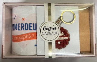Offrez un cadeau mémorable avec ce coffret cadeau qui combine un mug élégant et un porte-clés assorti.Ce coffret comprend un mug et un porte-clés assortis. Les messages "Emmerdeuse", le tout soigneusement emballé dans une boîte cadeau élégante.Le mug est idéal pour toutes les boissons chaudes, tandis que le porte-clés trouvera son utilité au quotidien. Chaque élément du coffret est à la fois fonctionnel et affectif.