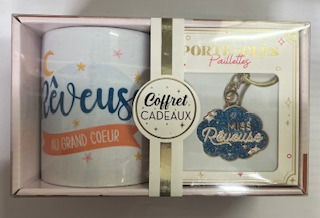 Offrez un cadeau mémorable avec ce coffret cadeau qui combine un mug élégant et un porte-clés assorti.Ce coffret comprend un mug et un porte-clés assortis. Les messages "Rêveuse", le tout soigneusement emballé dans une boîte cadeau élégante.Le mug est idéal pour toutes les boissons chaudes, tandis que le porte-clés trouvera son utilité au quotidien. Chaque élément du coffret est à la fois fonctionnel et affectif.