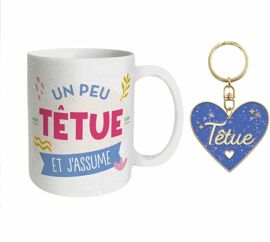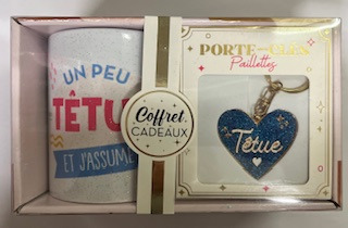 Offrez un cadeau mémorable avec ce coffret cadeau qui combine un mug élégant et un porte-clés assorti.Ce coffret comprend un mug et un porte-clés assortis. Les messages "Têtu", le tout soigneusement emballé dans une boîte cadeau élégante.Le mug est idéal pour toutes les boissons chaudes, tandis que le porte-clés trouvera son utilité au quotidien. Chaque élément du coffret est à la fois fonctionnel et affectif.