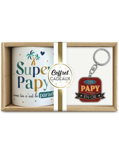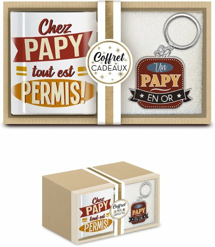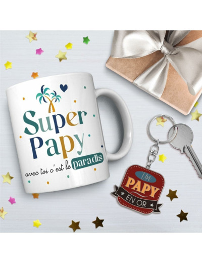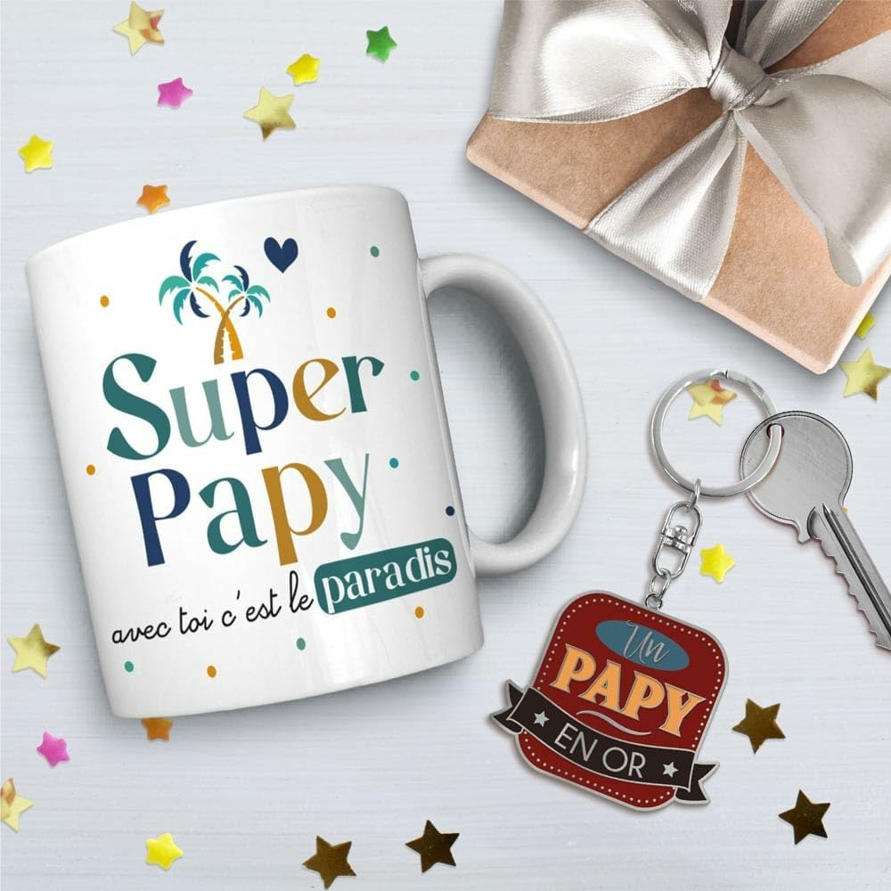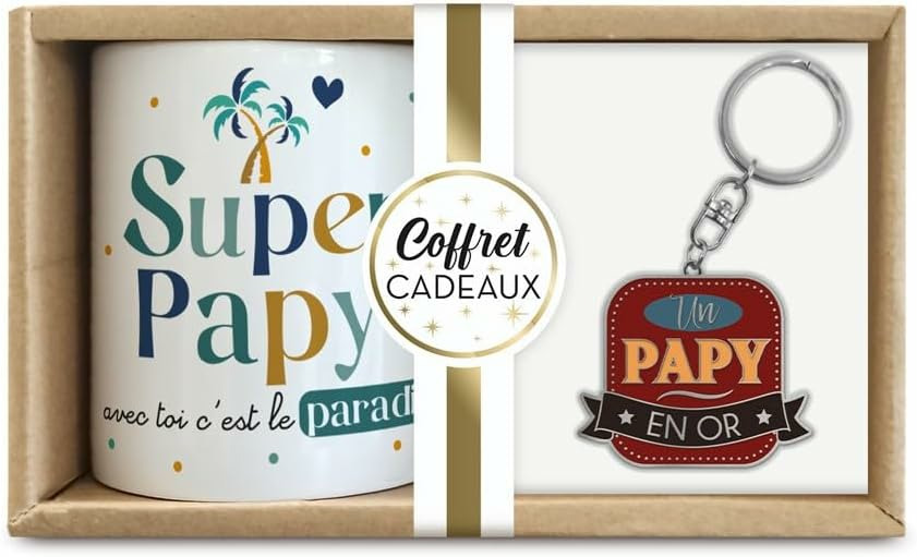 Offrez un cadeau mémorable avec ce coffret cadeau qui combine un mug élégant et un porte-clés assorti.Ce coffret comprend un mug et un porte-clés assortis. Le messages "Super papy", le tout soigneusement emballé dans une boîte cadeau élégante.Le mug est idéal pour toutes les boissons chaudes, tandis que le porte-clés trouvera son utilité au quotidien. Chaque élément du coffret est à la fois fonctionnel et affectif.