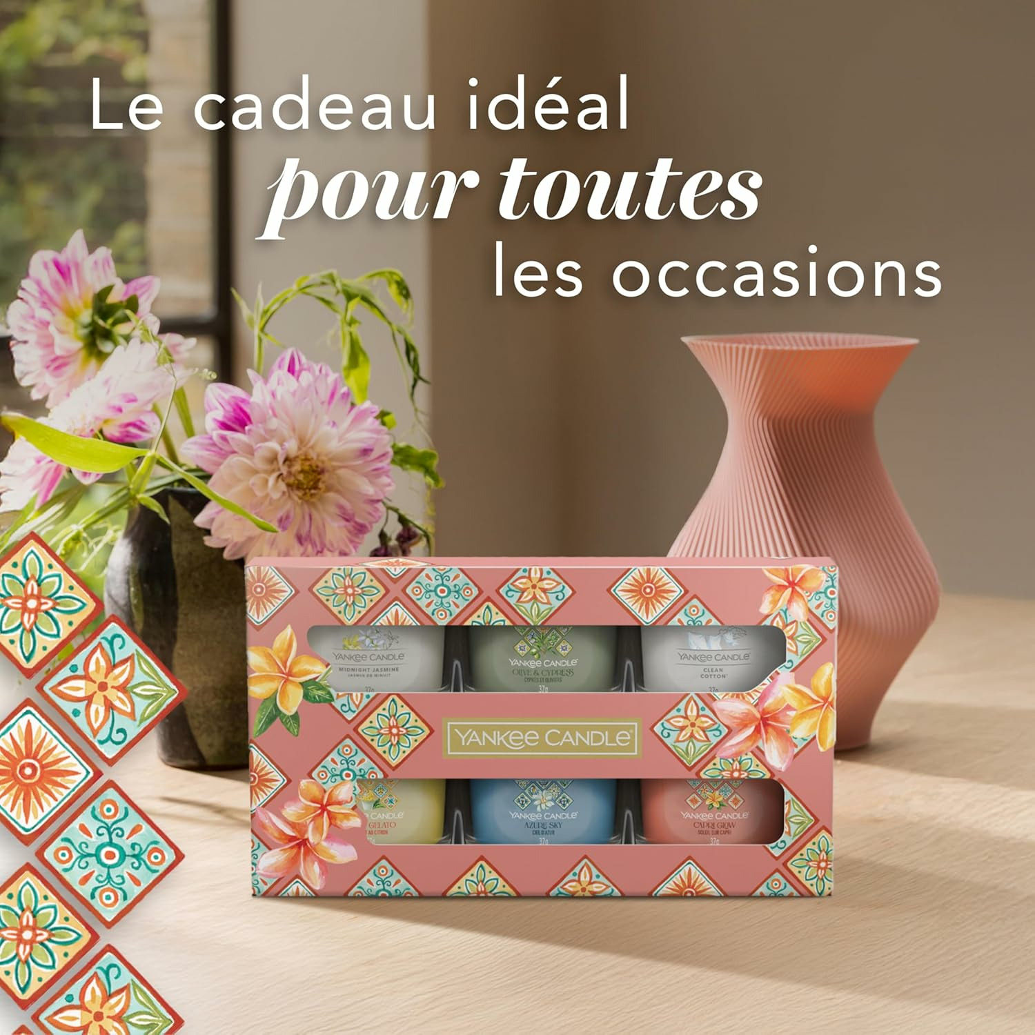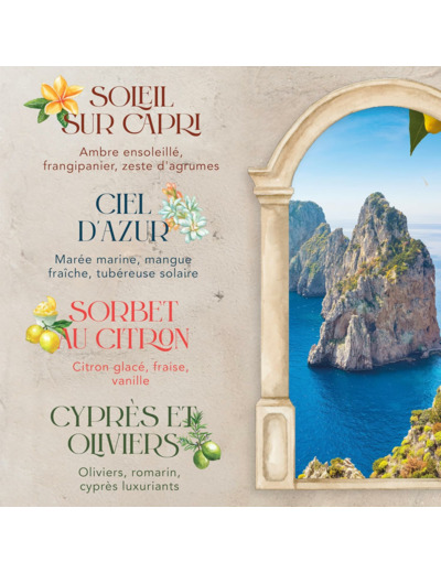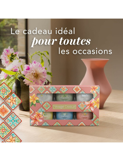 Inspirée des paysages époustouflants, des villes riches en histoire et des saveurs alléchantes de l’Italie, la collection Hello, Italy ! vous embarquera dans une aventure dans l’un des plus beaux pays du monde, avec des parfums intemporels et captivants. L’association de ces parfums et de l’emballage joliment décoré est tout ce dont vous avez besoin pour vos cadeaux printaniers. Les bougies votives en verre Yankee Candle sont disponibles dans les mêmes parfums que nos grands formats, pour de petits instants de plaisir simples (et adorables) et tester de nouvelles senteurs. Vous avez choisi votre préféré ? Disposez plusieurs bougies du même parfum pour ajouter de la couleur et du parfum à votre manteau de cheminée ou votre table.