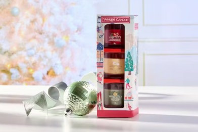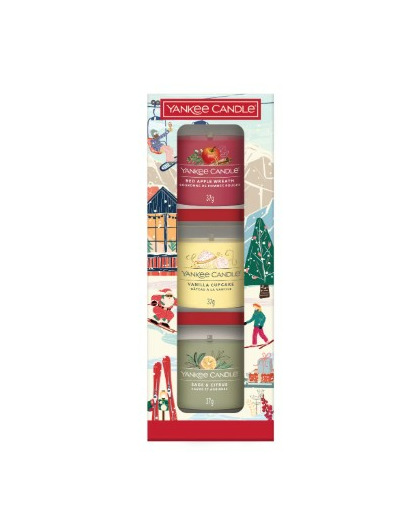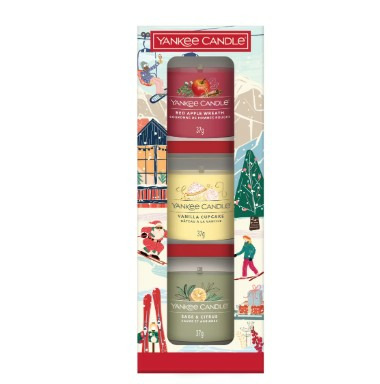 DESCRIPTION DU PRODUIT Ressentez la joie d’un rassemblement festif grâce au coffret de trois minis bougies votives en verre. Ce coffret comprend trois minis bougies votives en verre : couronne de pommes rouges, gâteau à la vanille, sauge et agrumes. Laissez la magie de Noël opérer grâce à notre collection festive, idéale pour faire plaisir à ceux qui vous sont chers. Ce coffret est une invitation à partager la chaleur, la joie et la magie des fêtes de fin d’année.