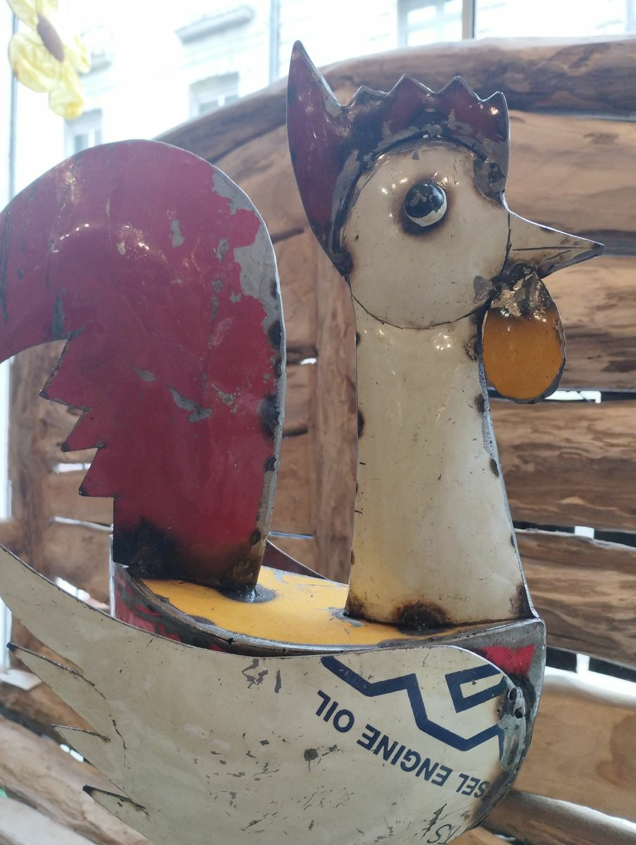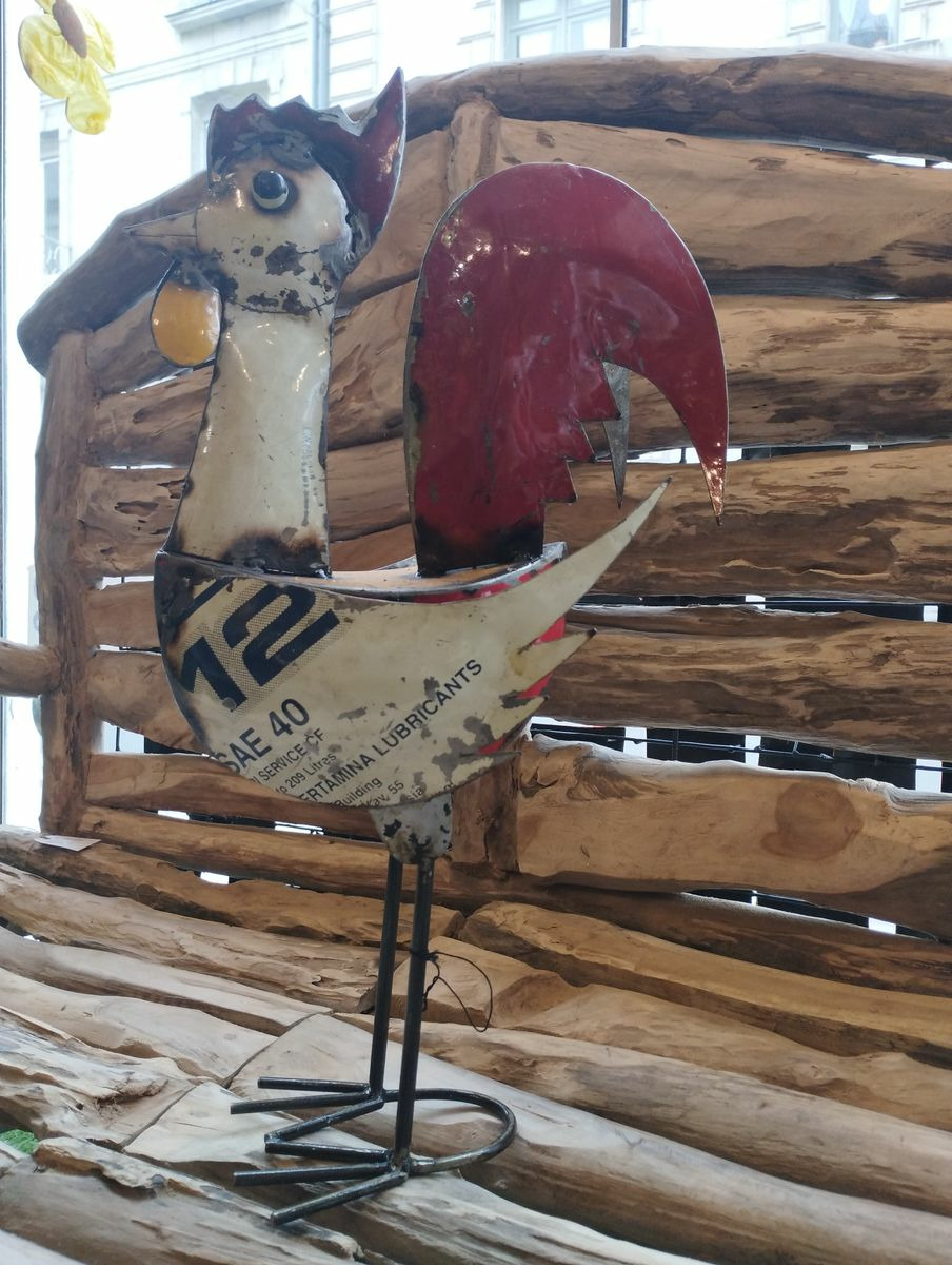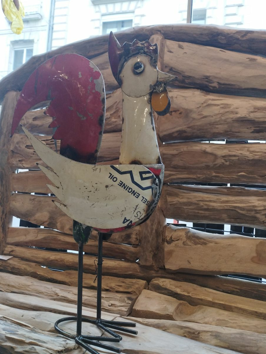Coq en métal recyclé
