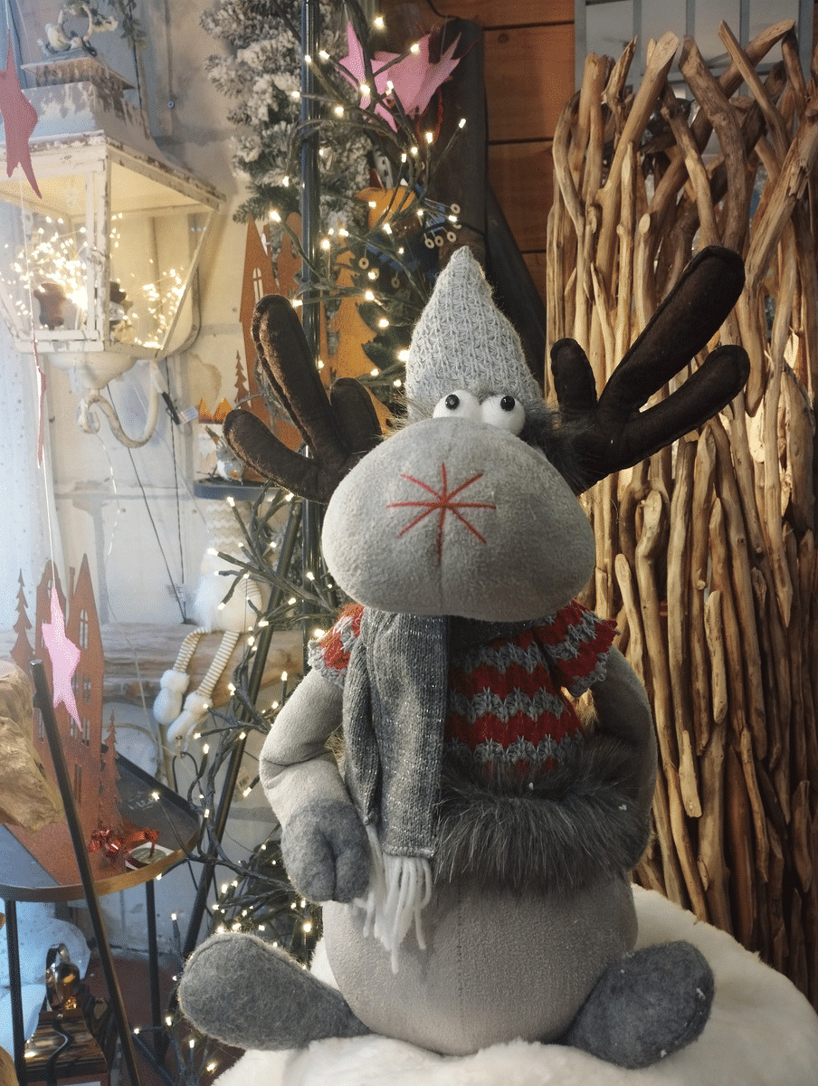 Doudou Caribou gris ,décoration de noél