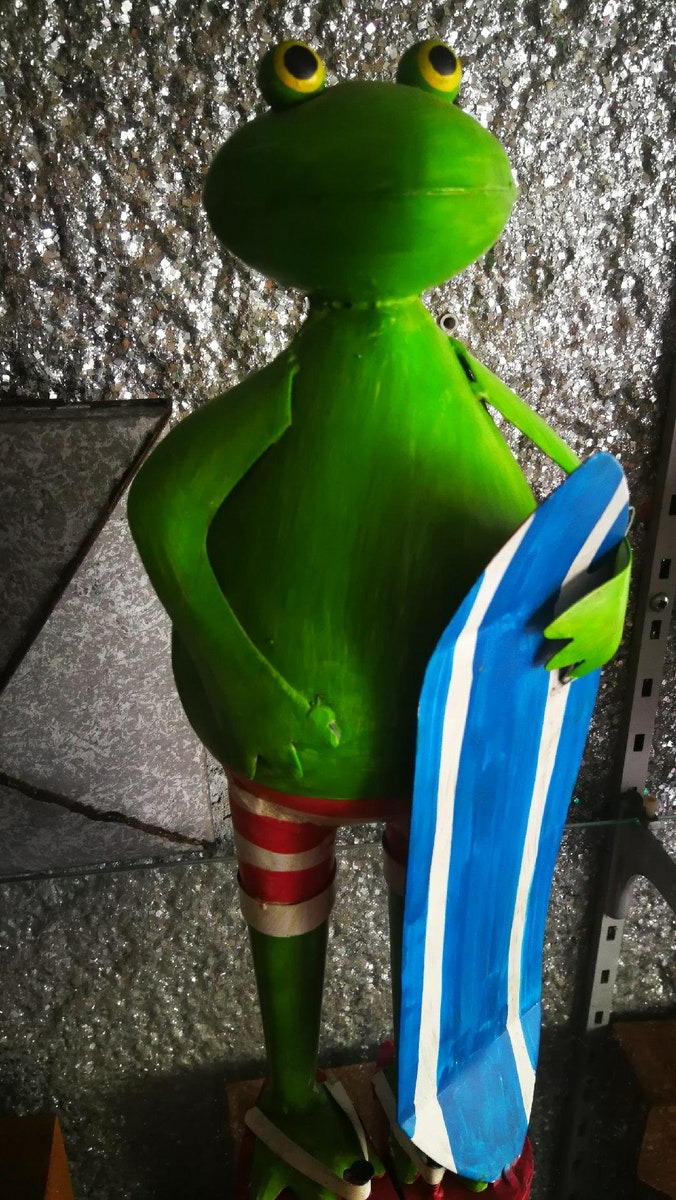 Description du produit : Objet De Décoration Pour L Extérieur,Objet De Décoration Grenouille Surf Et Tongue,Tient Seule Sur Son Socle;Succès Garanti.