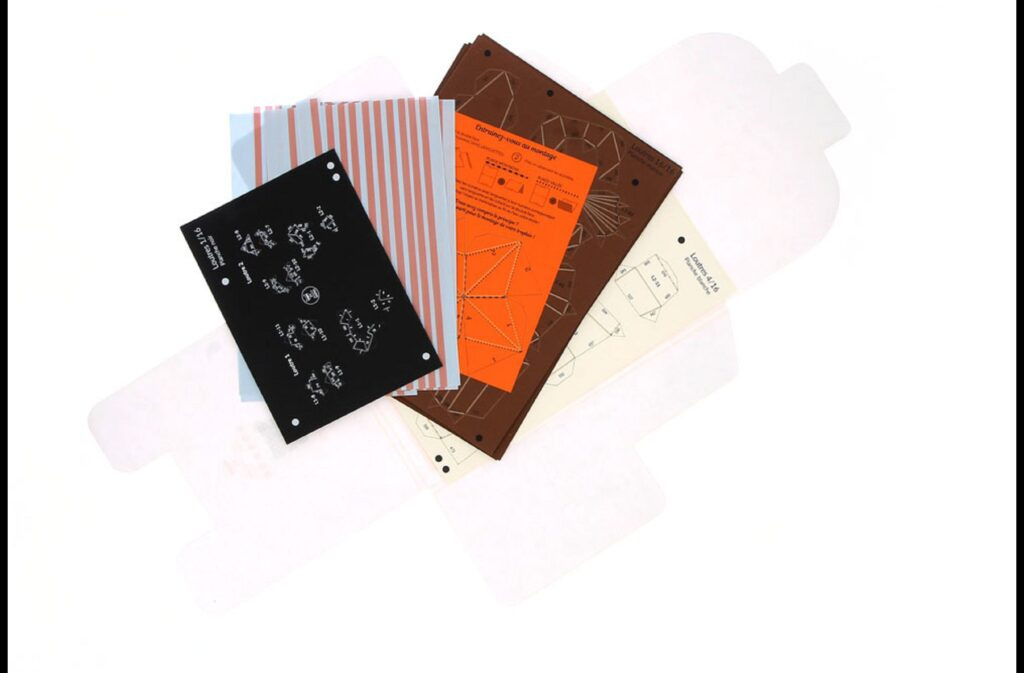 Ce kit est composé de : mode d’emploi, 16 planches en papier (les pièces y sont prédécoupées et pré-pliées), scotch double-face pour le montage