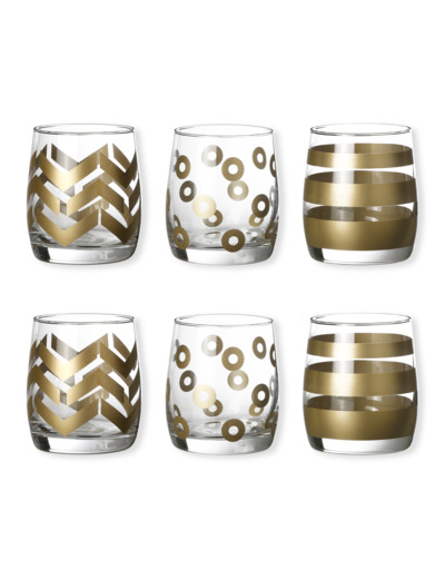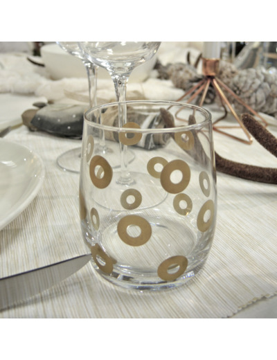 Très joli set de 6 gobelets dorés aux motifs assortis qui se feront remarquer sur votre table de fête, à adopter aussi pour le quotidien afin d'égayer sa table à manger ! On aime le graphisme différent sur chaque verre, leur design doré et leur belle contenance qui les rendent pratiques et esthétiques. C'est une belle idée cadeau également.